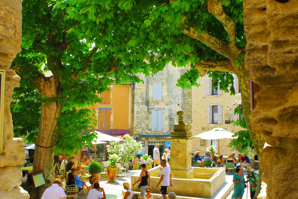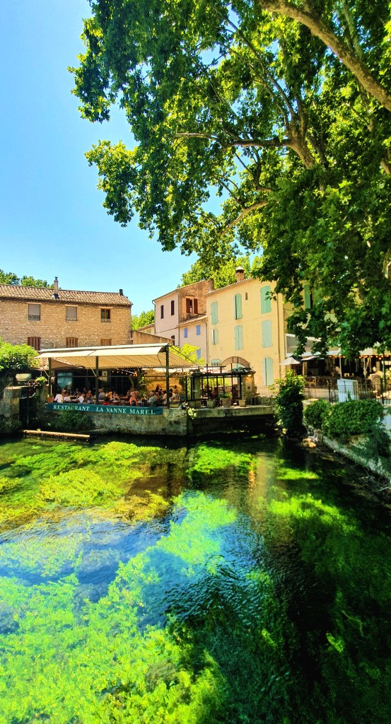 Una passeggiata lungo le verdi rive della Sorgue è una vera delizia per gli occhi: qui antichi mulini si specchiano nelle acque azzurre, mentre le case di pietra, con le tipiche persiane blu, emergono tra la vegetazione rigogliosa. Il villaggio ha saputo preservare il suo fascino autentico, con i suoi vicoli, le botteghe di artigianato locale e i caffè accoglienti. Luoghi perfetti per rilassarsi e assaporare l’atmosfera provenzale.