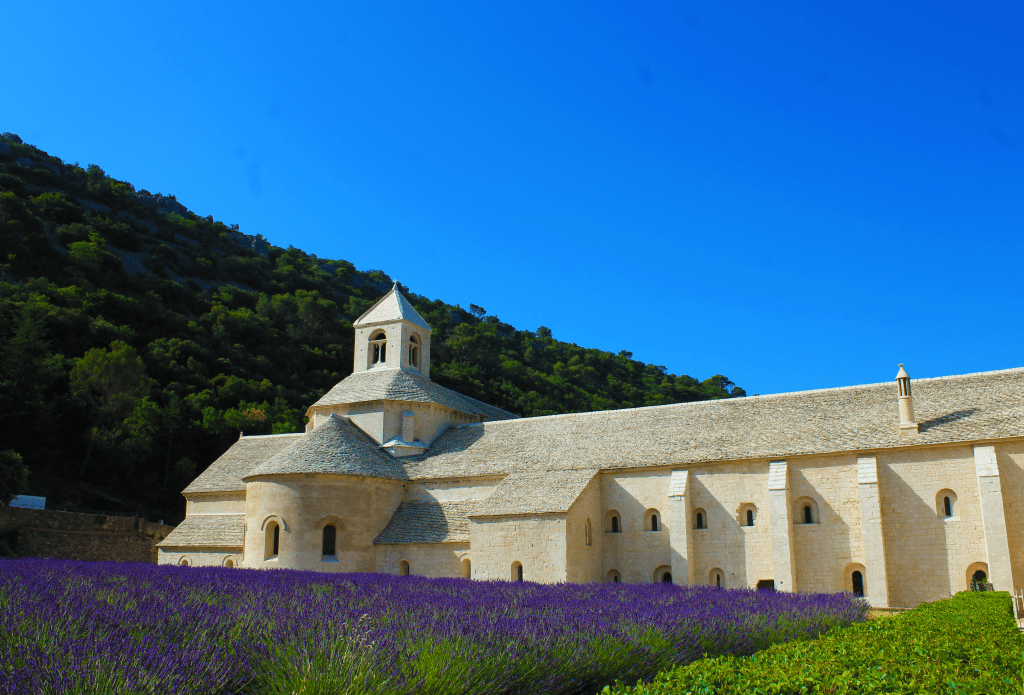 Ma è il paesaggio circostante che rende veramente unica l’Abbazia di Senanque. Durante l’estate, i campi di lavanda che circondano l’edificio sbocciano in una miriade di tonalità di viola, creando un contrasto straordinario con il bianco della pietra dell’abbazia. Questo è il momento in cui il luogo in cui ci troviamo diventa una delle immagini più iconiche della Provenza.